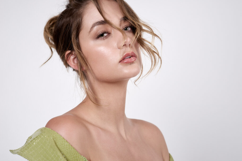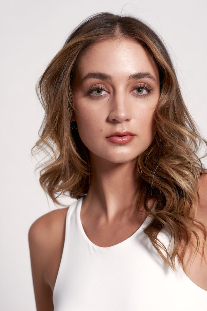 A white bodysuit, two ways–modeled by Emma in the studio.